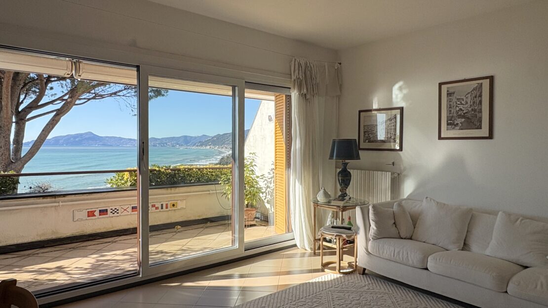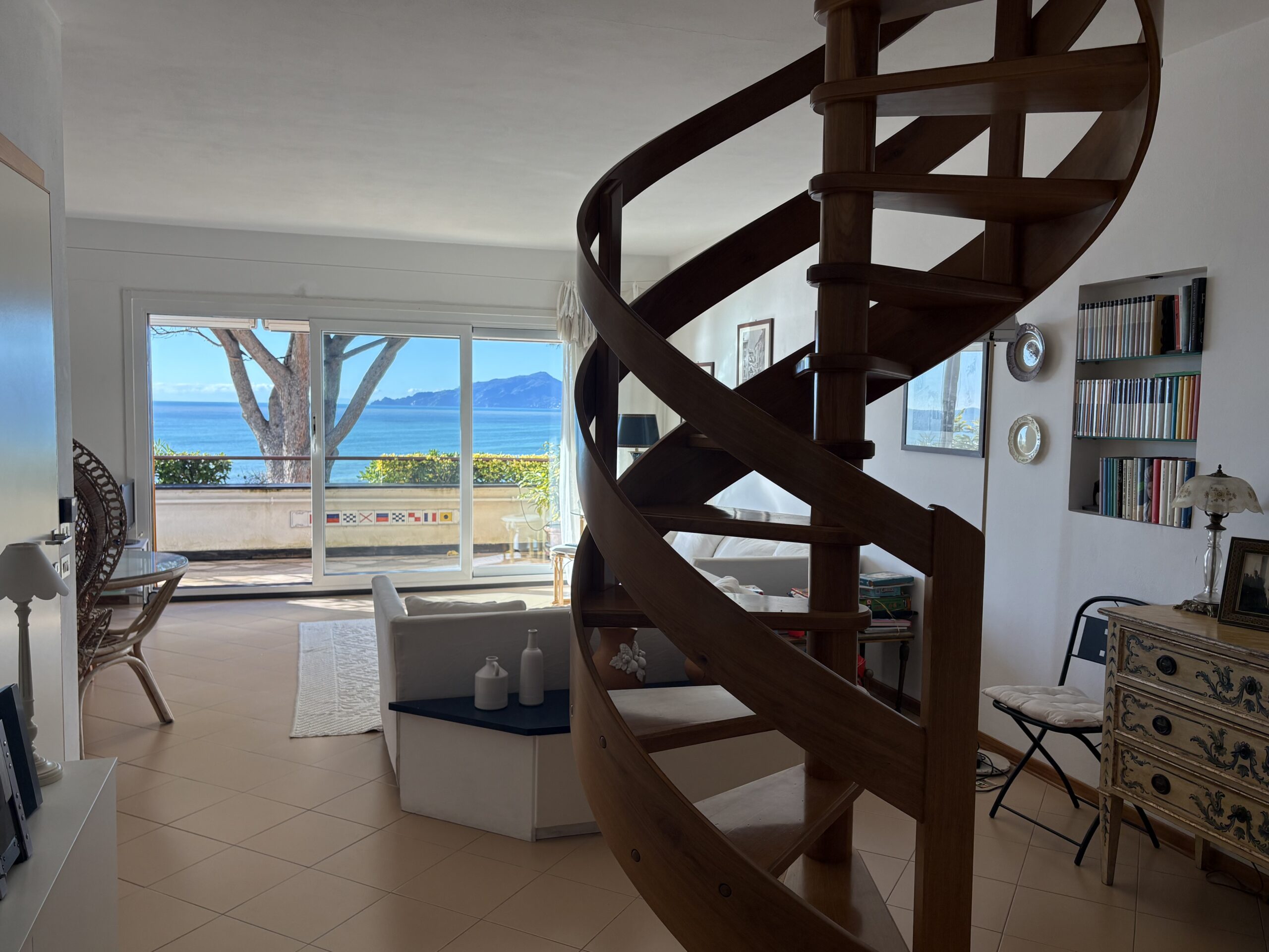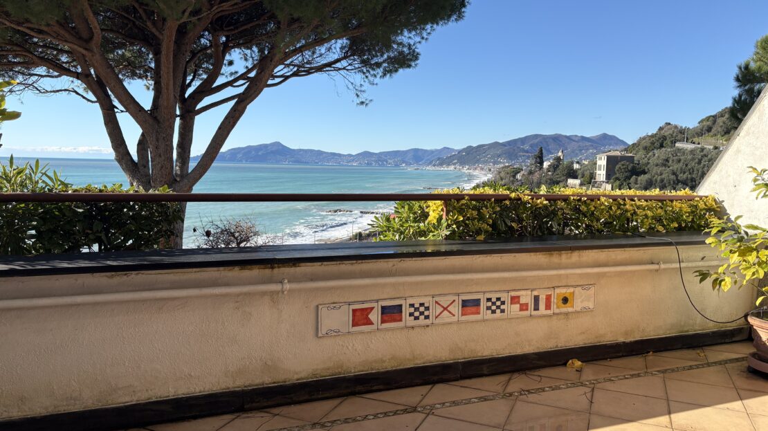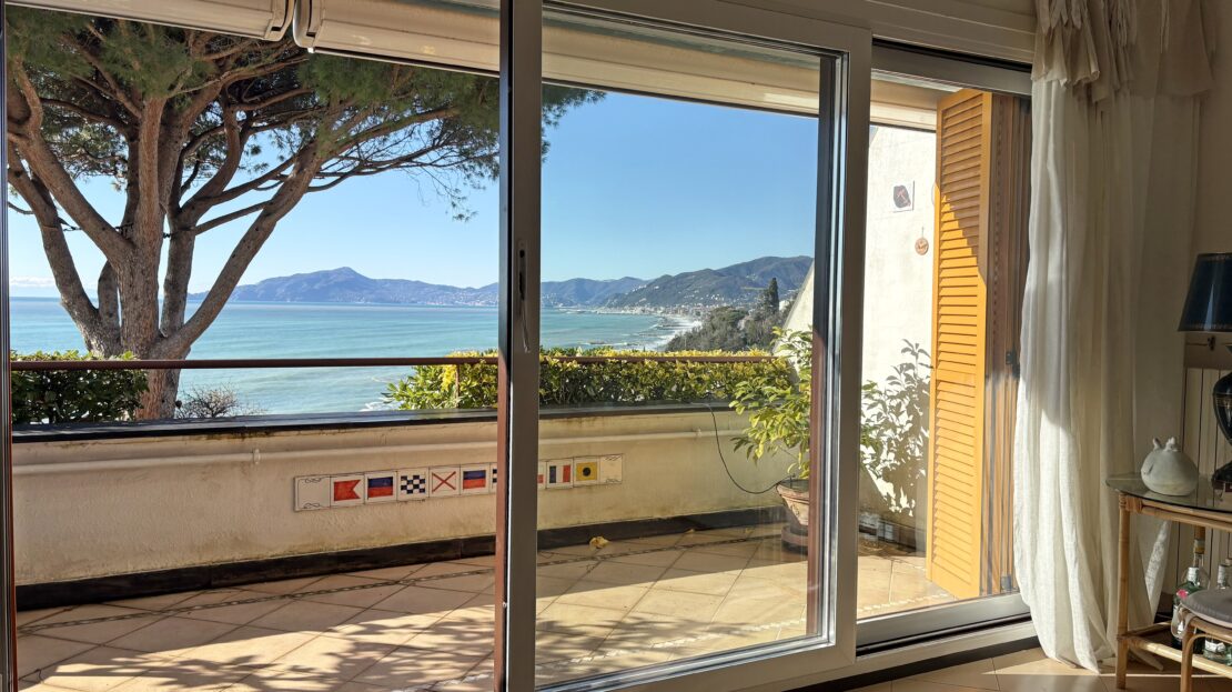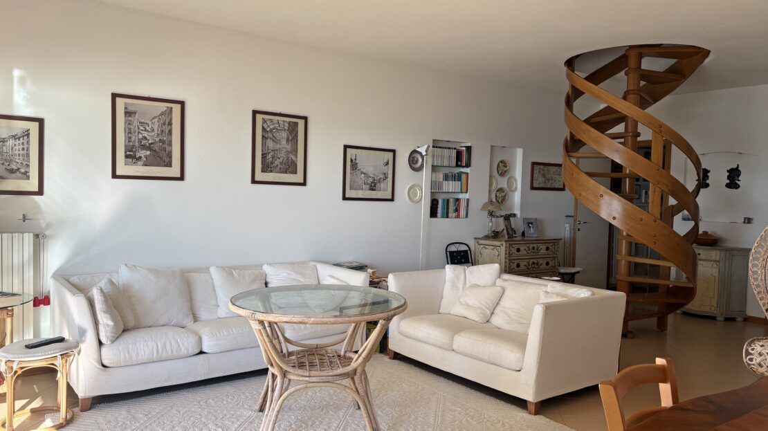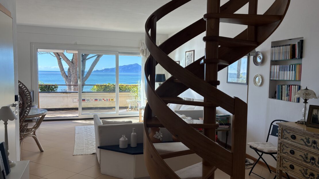 Attico su 2 livelli con ampie terrazze e vista mare frontale.