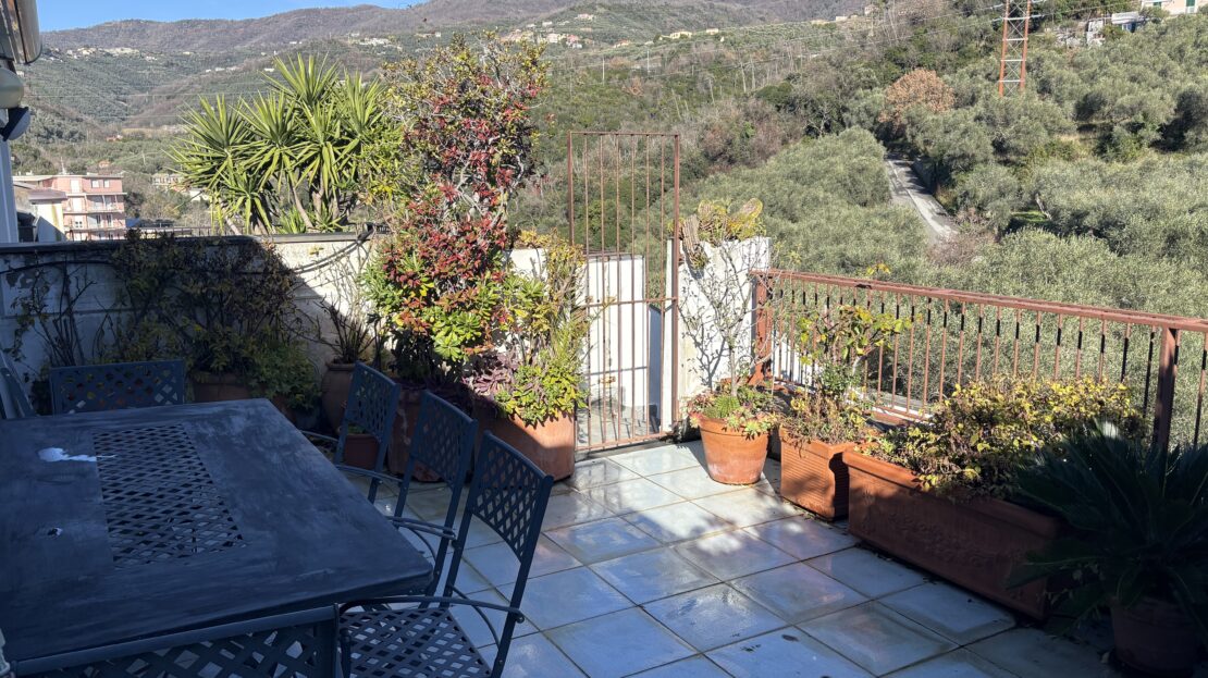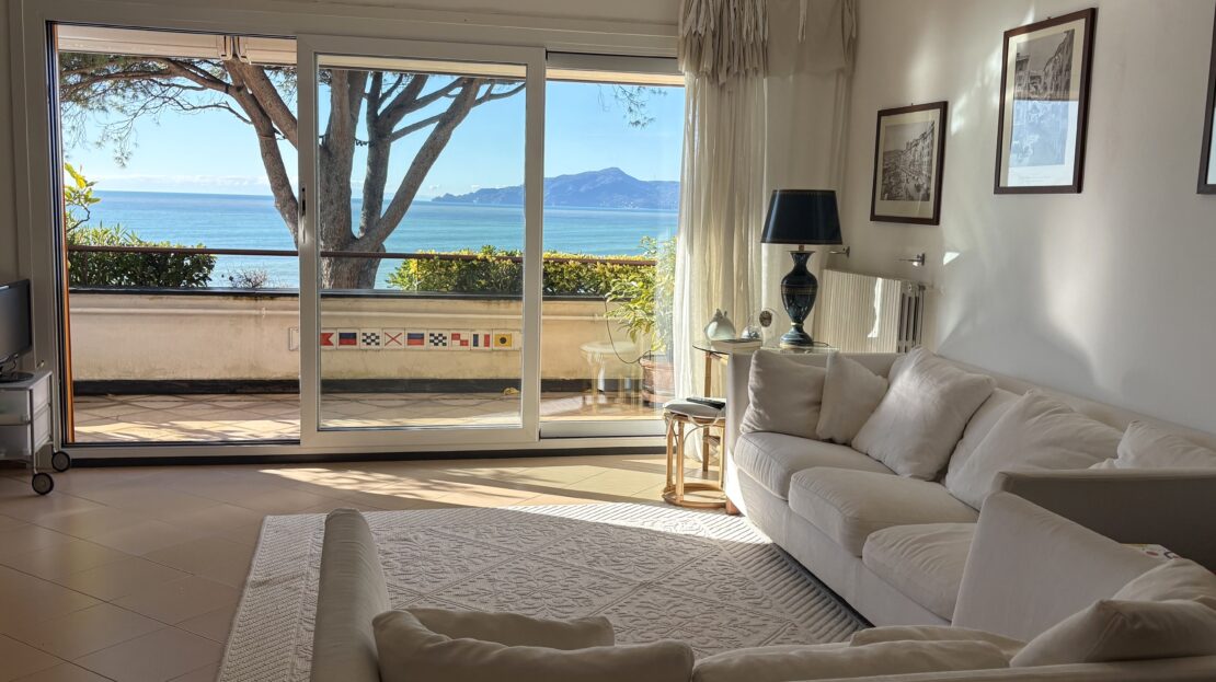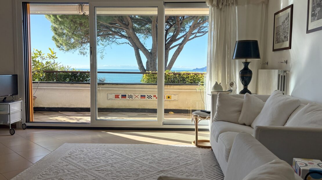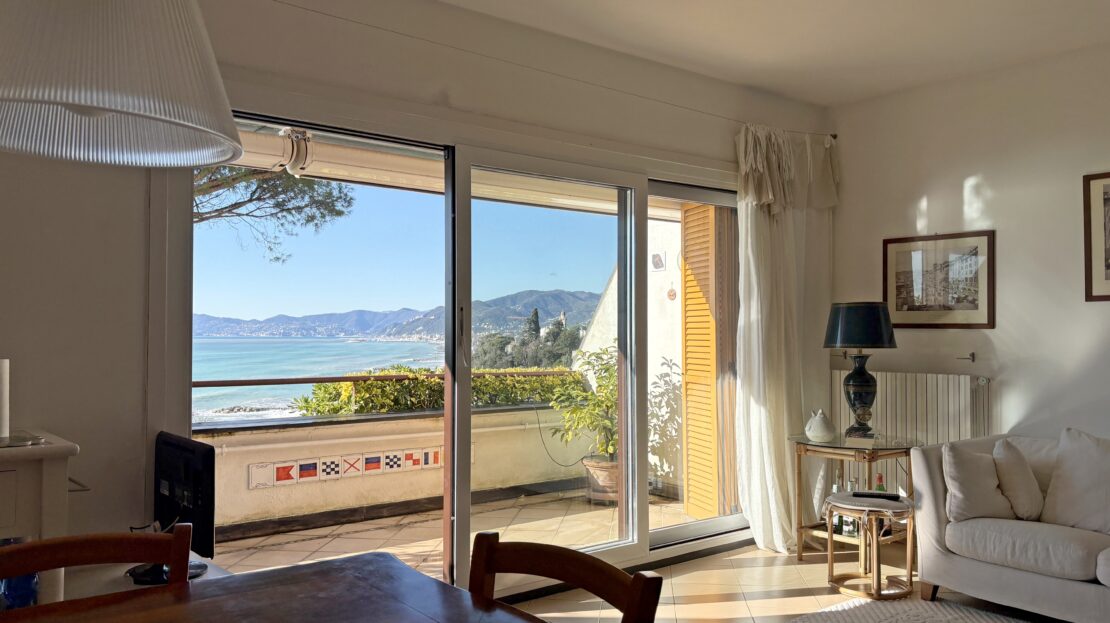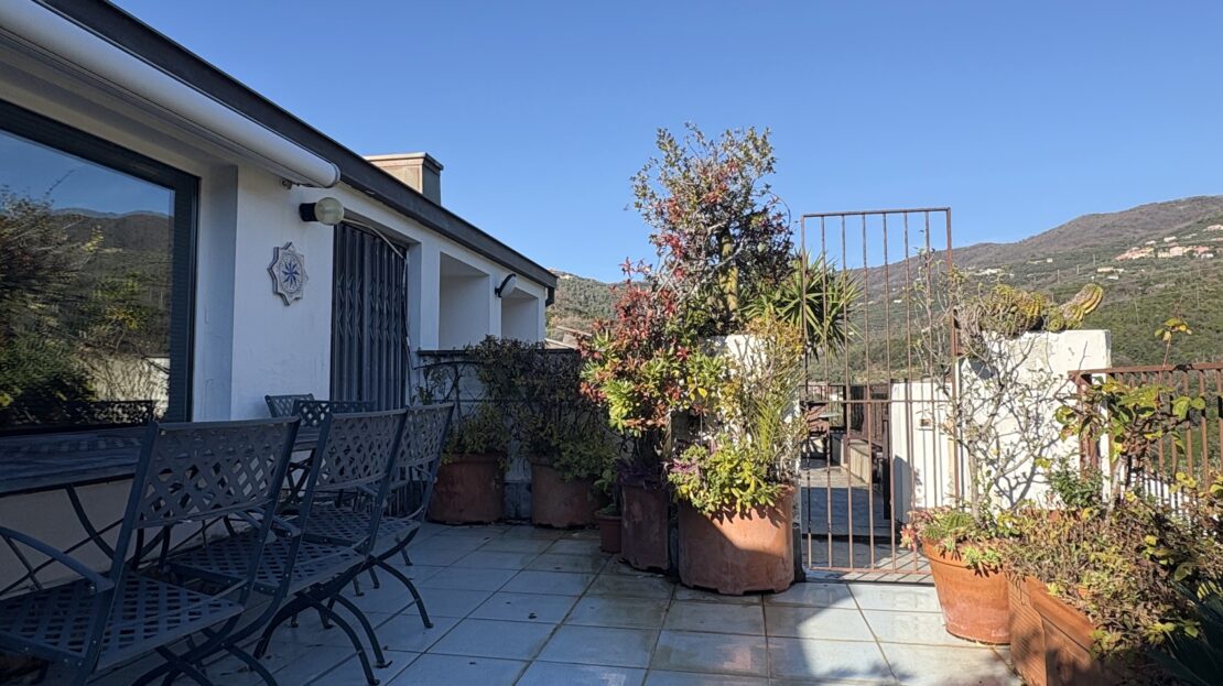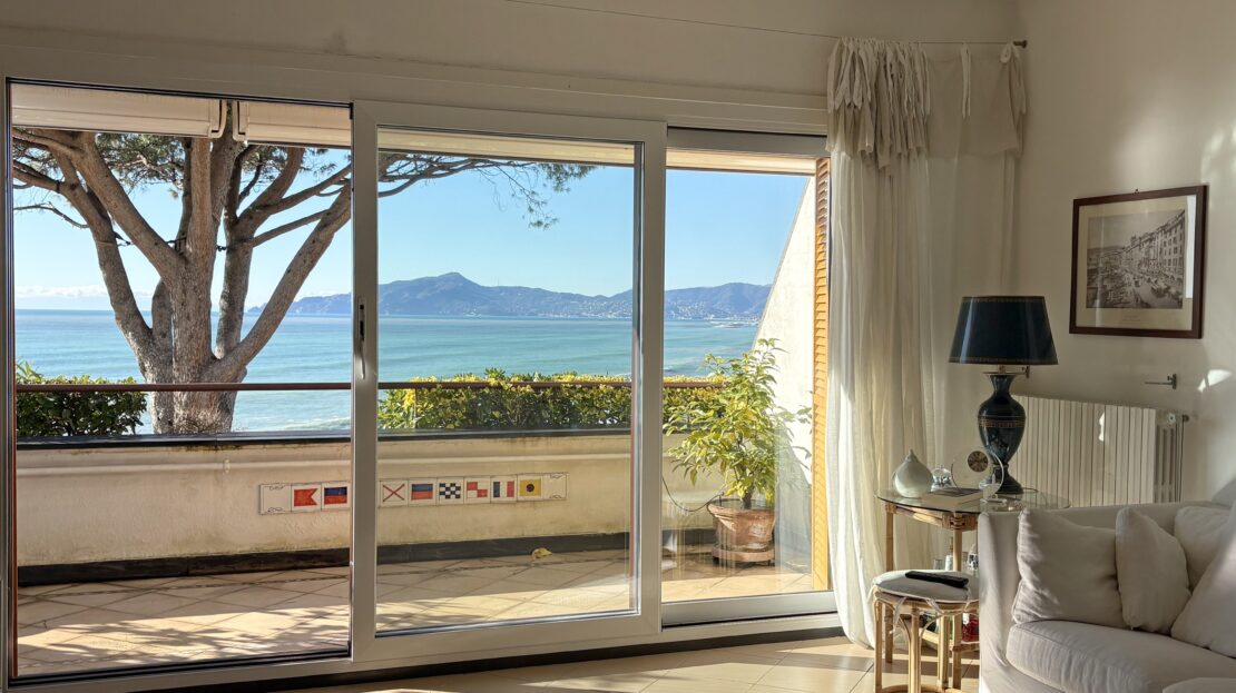 Attico su 2 livelli con ampie terrazze e vista mare frontale.