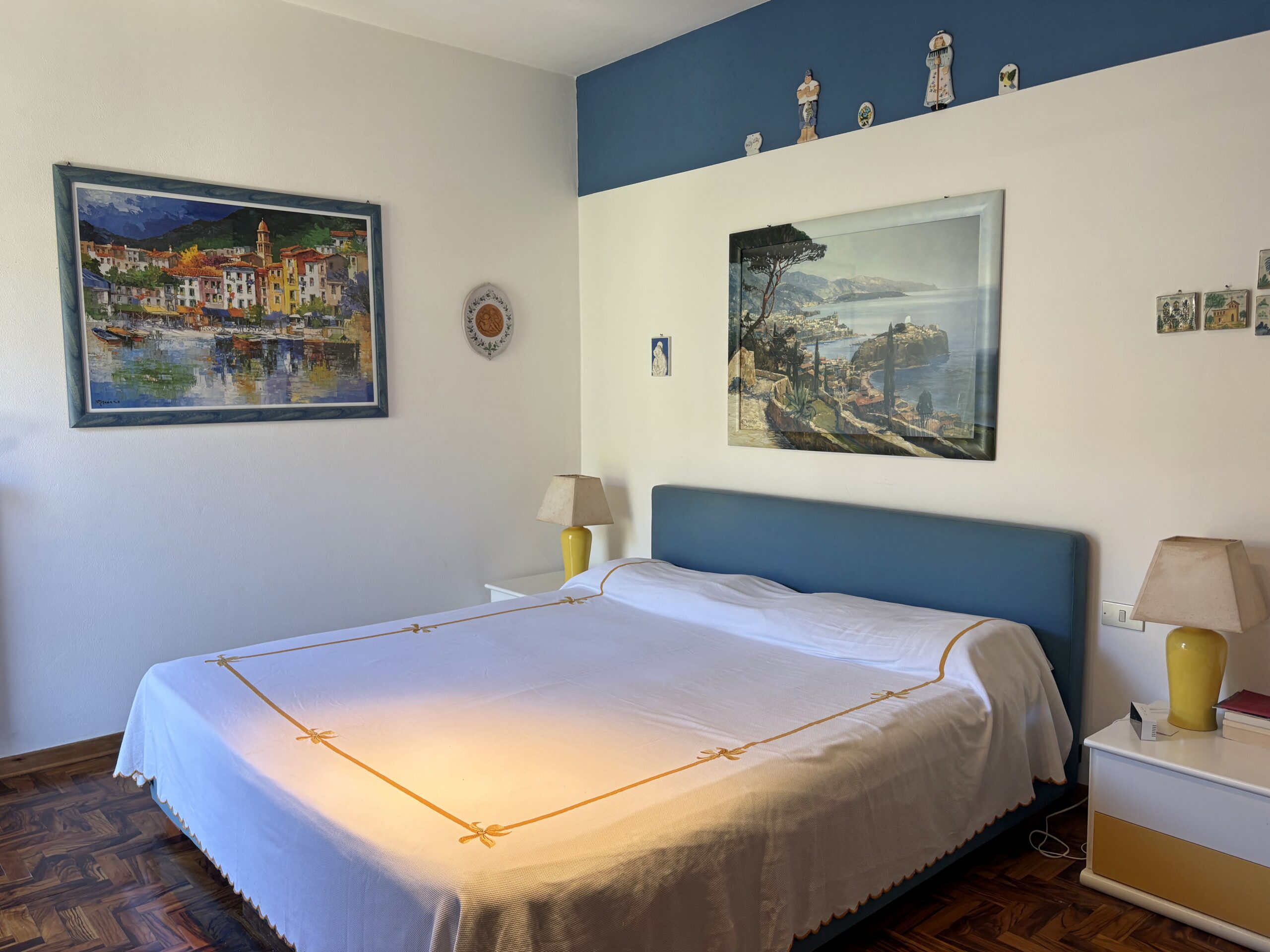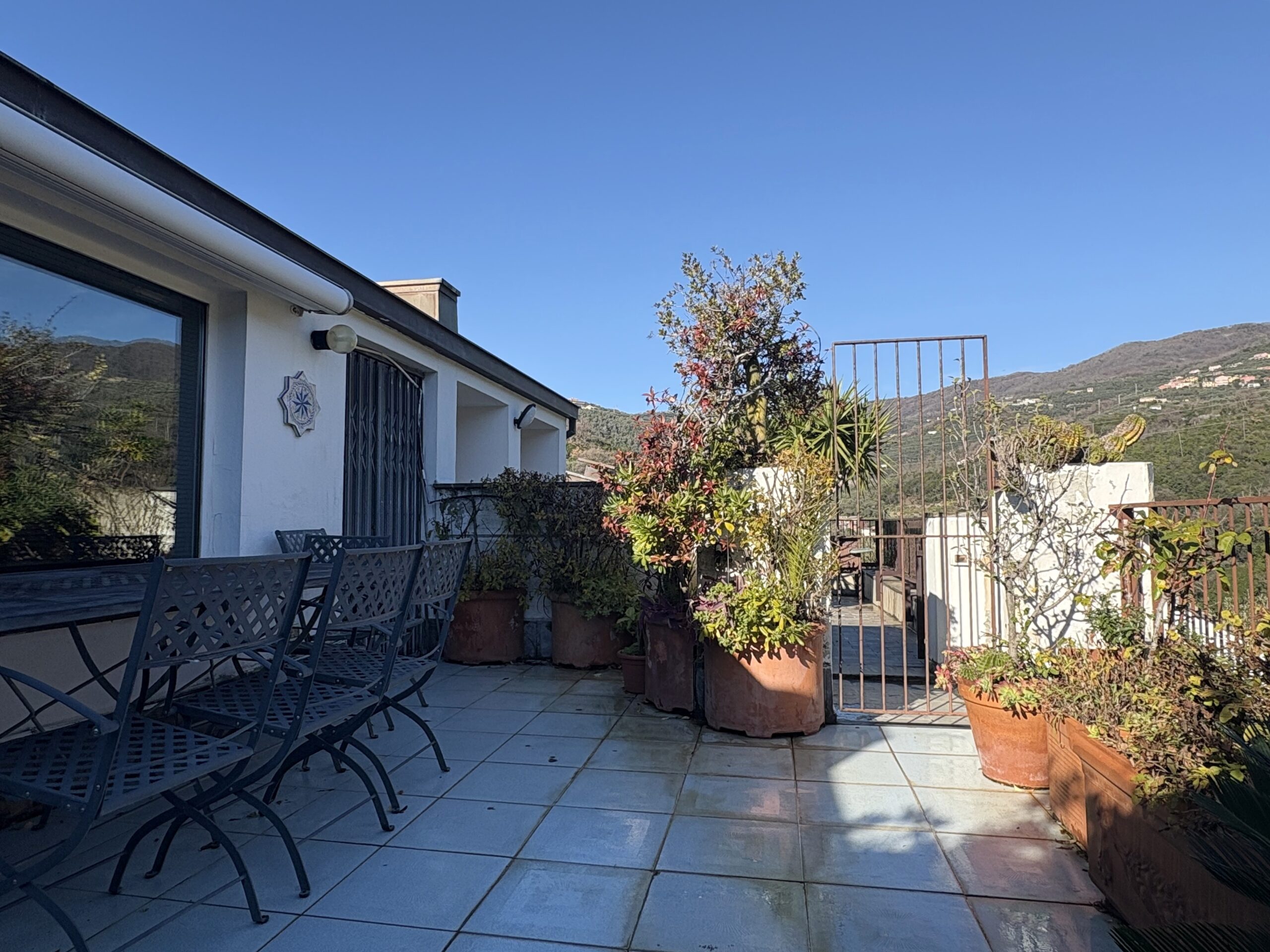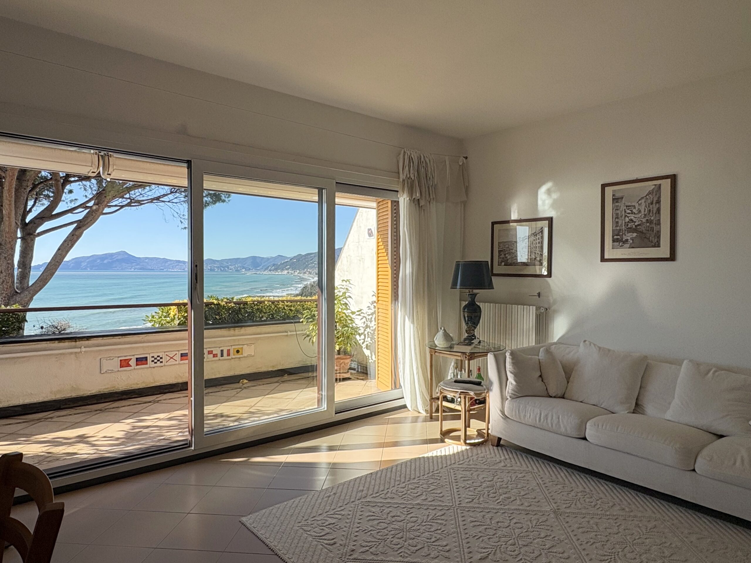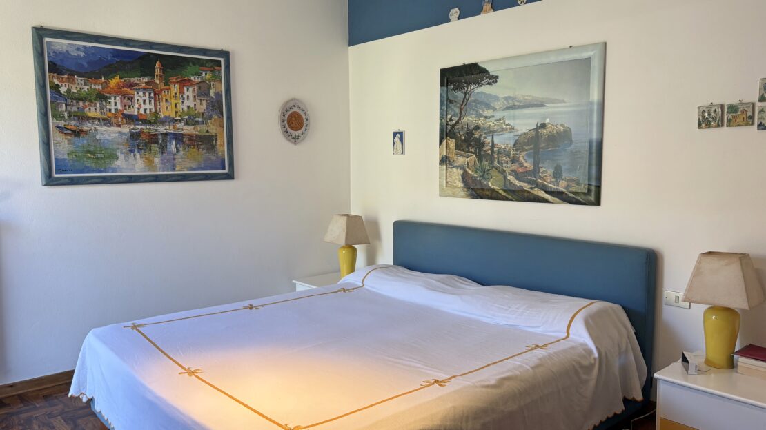Composto da ingresso, ampio soggiorno totalmente finestrato sul mare, angolo cottura separato, bagno e camera da letto matrimoniale. Al piano superiore trovano spazio 2 camere da letto, un secondo bagno, uno studio e un altro piccolo angolo cottura. Ampia terrazza squadrata vivibile con vista sulle colline e sul verde circostante.
